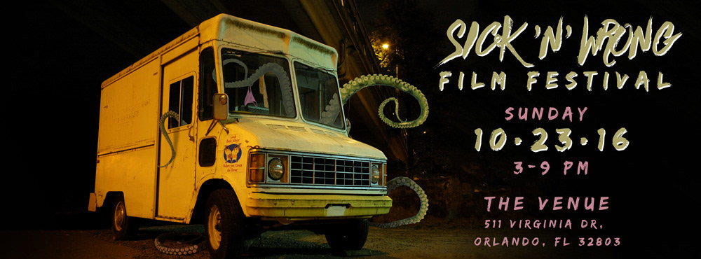 Program and other collateral for the inaugural Sick 'N' Wrong Film Festival held in sunny Orlando, FL. The cover art was created in photoshop and inspired by the festival award, The Sickie.